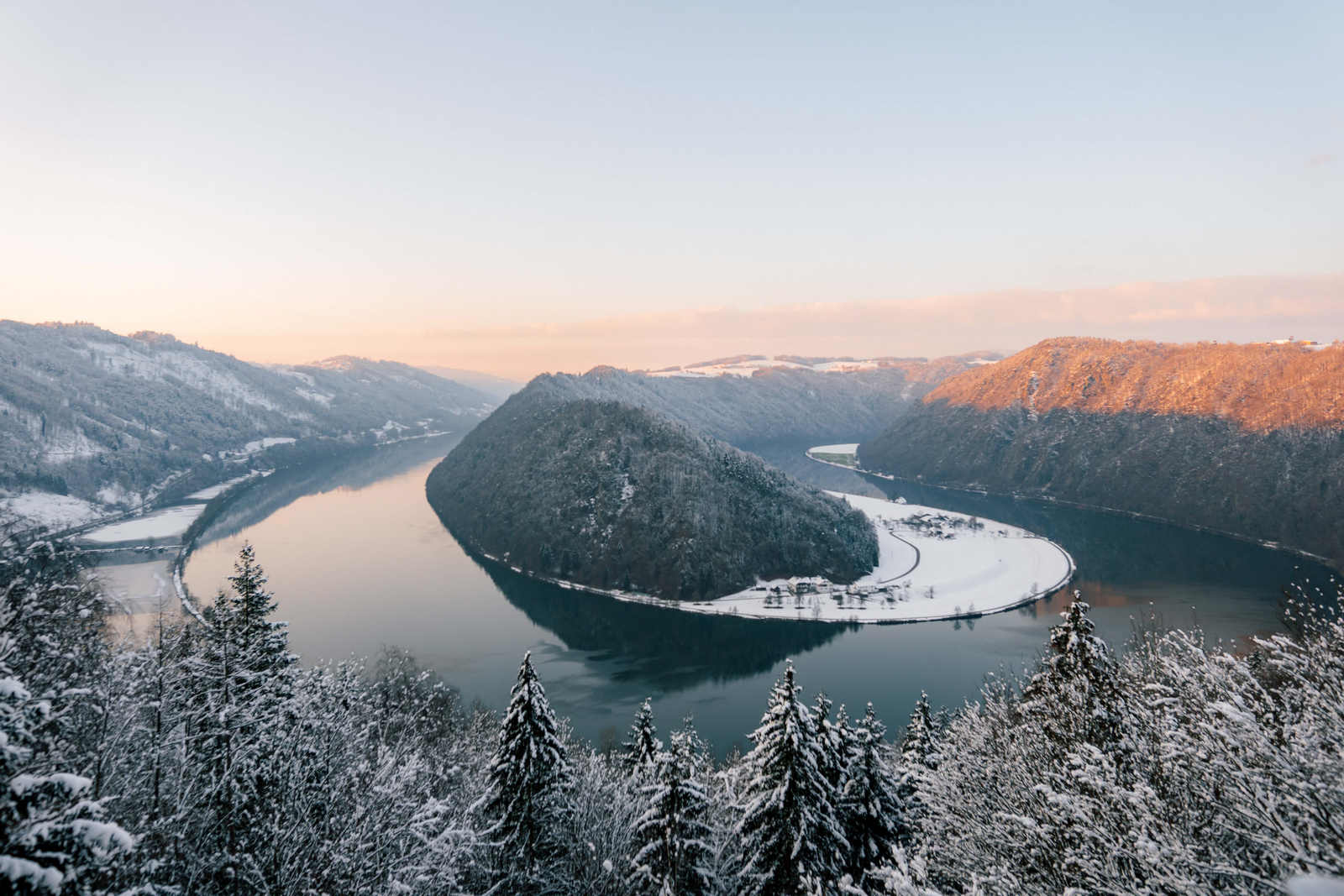 The Danube loop „Schlögener Schlinge” in winter © Tourismusverband Donau Oberoesterreich, CM Visuals